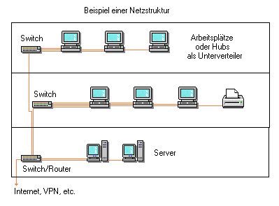 Strukturierung des Netzes mit Switches. In einem Peer-to-Peer-Netz (z. B. Unix