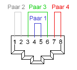 Der Standard DIN EN 50173 regelt die Kabelbelegung zumindest bei Kupferkabeln in Netzen. Es gibt vier Kabelpaare: