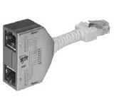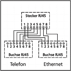 Der Cable-Sharing-Adapter wird immer paarweise eingesetzt. Auf der einen Seite am Verteiler, um die beiden Dienste auf die Installationsleitung aufzuschalten und auf der anderen Seite (z. B. an der Dose), um die Dienste vom 8-adrigen Anschluss wieder abzugreifen. Durch die flexible Anschlußschnur wird eine gute Verteilung der Zugkräfte erreicht, die von der Anschlußschnur der Endgeräte bzw. von den Patchkabeln auf den Adapter einwirken.