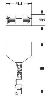 In der Regel wird das Fabrikat Telegärtner MJ45 LFS 8/8 verwendet. Die Darstellung zeigt die Draufsicht (anschlusseitig) der Dose. Die obere Klemmenreihe ist für die linke Dose, die untere Klemmenreihe für die rechte Dose. Beim Standardnetz sind nur vier Kabeladern pro Dose anzuschliessen (Pins 1,2, 3 und 6, siehe oben).