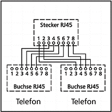 Für die verschiedenen Sprach- und Datendienste sind in den internationalen Richtlinien unterschiedliche Buchsenkontaktbelegungen festgelegt worden. Damit die Signalleitungen an den richtigen Kontakten der Endgeräte angelegt sind, wurden für Y-Kabel (Cable Sharing Adapter) verschiedene Ausführungen entwickelt: