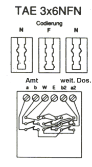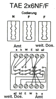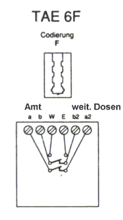 Einen Sonderfall bildet die NF/F-Dose. Hier können zwei Amtsleitungen angeschlossen werden. Einmal N und F und einmal nur F.