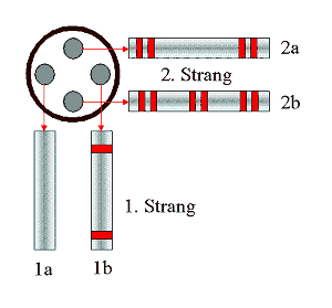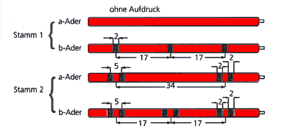 Die Vierergruppen selbst haben Ringkennzeichnungen auf den einzelnen Adern: