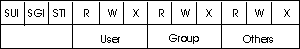 Historisches: Das System der Zugriffsrechte, insbesondere SUID, SGID und STICKY, wurden von den Entwicklern patentiert. Interessant an der Patentschrift (Bild der ersten Seite) war, das alles als Digitalschaltung dargestellt wurde, denn Software war damals noch nicht patentierbar. Das Patent wurde ein Jahr nach Erteilung von den Entwicklern freigegeben.
