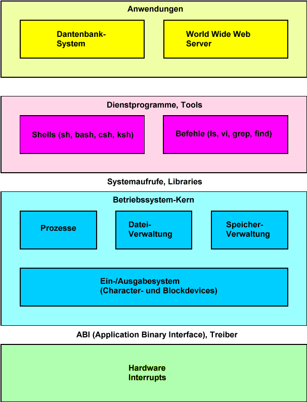 Linux ist im Prinzip nichts anderes als eine neue Unix-Variante. Zu den Besonderheiten von Linux zählen die freie Verfügbarkeit des gesamten Quelltexts und die große Hardware-Unterstützung. Genau genommen bezeichnet der Begriff Linux nur den Kernel: Der Kernel ist der innerste Teil (Kern) eines Betriebssystems mit ganz elementaren Funktionen wie Speicherverwaltung, Prozessverwaltung und Steuerung der Hardware.