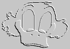 Will man einen reliefartigen Effekt erreichen, kann man die 'Emboss'-Funktion einsetzen. Im linken Bild wurde die Funktion auf das Farbbild angewendet, dagegen wurde das rechte Bild zun„chst auf Gruastufen reduziert und Augen sowie der Schnabel geschwärzt. Dabei ist dann auch gleich der Kneifer entfernt worden. Man sieht hier am Schnabel die Reliefstruktur besonders gut.