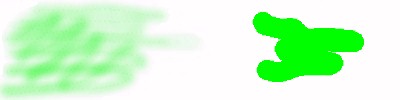 Das folgende Bild zeigt den Effekt der 'Sprühdose'. Links wurde eine 24-Bit-Farbtiefe gewählt, rechts im Bild dagegen nur 4 Bit. Dort ergibt sich nur die Wirkung eines Markers. Bei der Sprühdose lassen sich Farbmenge, Breite und Deckungskraft einstellen. Sie eignet sich gut für Retuschen.