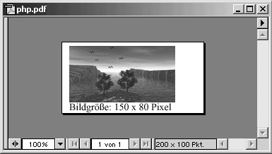 pdf_show_xy ( $dokument, 'Bildgröße: ' . $breit . ' x ' . $hoch, 10, 4 );
