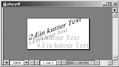 pdf_show_xy ( $dokument, '4.Ein kurzer Text', 30, 5 );
