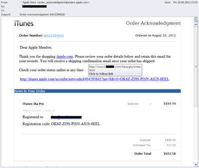 Zweitens kann und sollte man sich – bevor man einem Link in einer Mail folgt – davon überzeugen, dass eine Mail, die angeblich von einem bekannten Anbieter stammt, zumindest den entsprechenden Absender im Feld „Von“ anzeigt und dass alle Links auch tatsächlich auf die angegebene Webseite verweisen. Diese Adresse wird sichtbar, wenn man den Mauszeiger auf den Link bewegt.