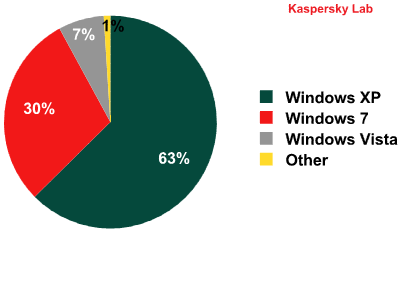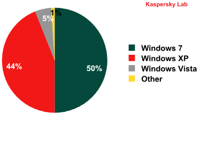 Der Anteil von Windows 7 an allen installierten Windows-Versionen stieg innerhalb eines Jahres von 30 Prozent auf 50 Prozent. Obwohl Windows 7 regelmäßig automatisch aktualisiert wird, gehen die Angriffe auf die Computer von Windows-Nutzern weiter: Wie bereits oben erwähnt erfolgt die Einschleusung von Schädlingen im Wesentlichen nicht über Windows-Komponenten, sondern über installierte Anwendungen anderer Hersteller.