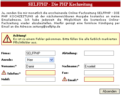 es mit Fehlern umgeht. Sie zeigen Ihren Besuchern mit einem solchen Formular