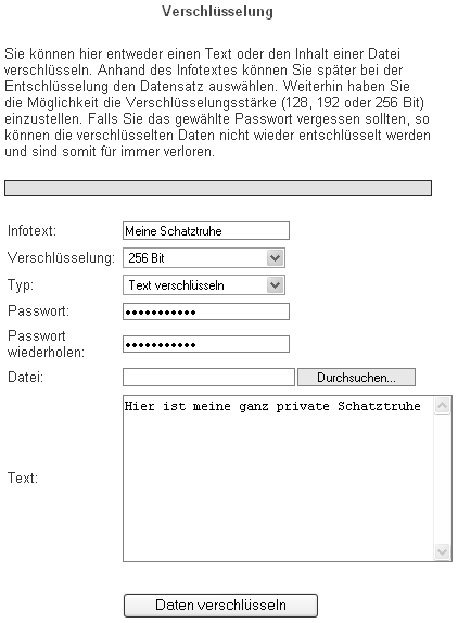 Bei der Verschlüsselung können Sie wahlweise reinen Text oder eine Datei