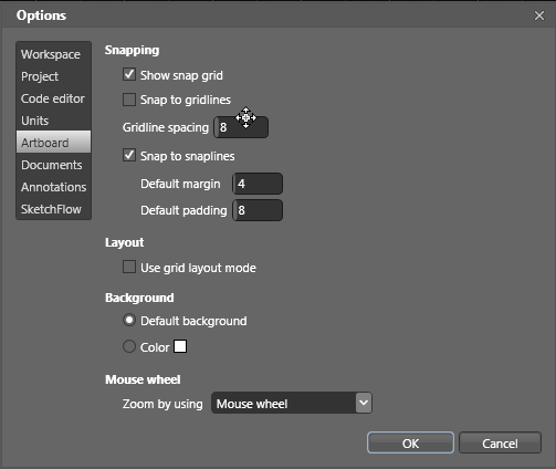 In this example, you will keep the grid settings at their default, but keep in mind that you can change the grids in the Options dialog box by choosing Tools > Options, then choose Artboard.