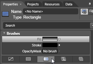 The Properties panel offers you the opportunity to apply Fill Brushes as well as Stroke Brushes. You can select different colors, and gradients in which you can set the fill or stroke for an object. In this example you will set the fill of the rectangle object to be a gradient.