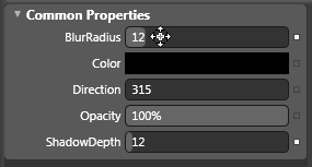 In the Common Properties pane, click and drag the BlurRadius to a value of 12, then click and drag the ShadowDepth to 12. The drop shadow is now positioned further away from the stroke and is a little softer.