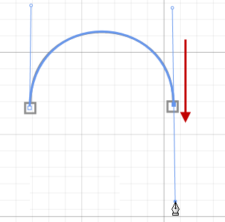 As you drag your cursor down, notice that a curve is being formed between the two anchor points. As long as you do not release the mouse button, you can reshape this line by dragging the mouse in different directions.