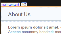 Click inside the Heading labeled Welcome! and type About us. You can do this because you defined this area as editable in the last exercise.