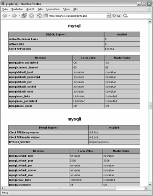 Nachdem Sie die MySQL- bzw. MySQLi-Erweiterung eingebunden haben, können Sie die erfolgreiche Konfiguration mit phpinfo() überprüfen.